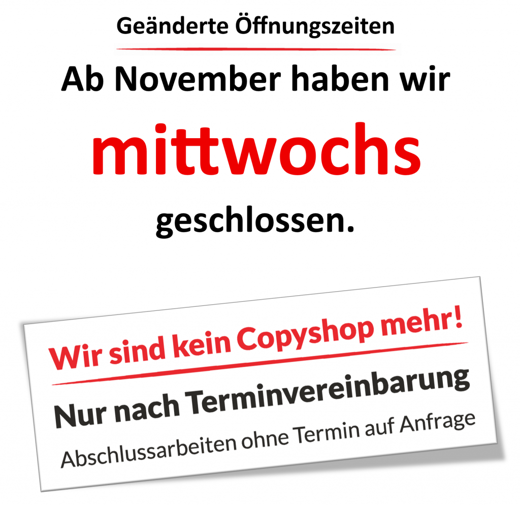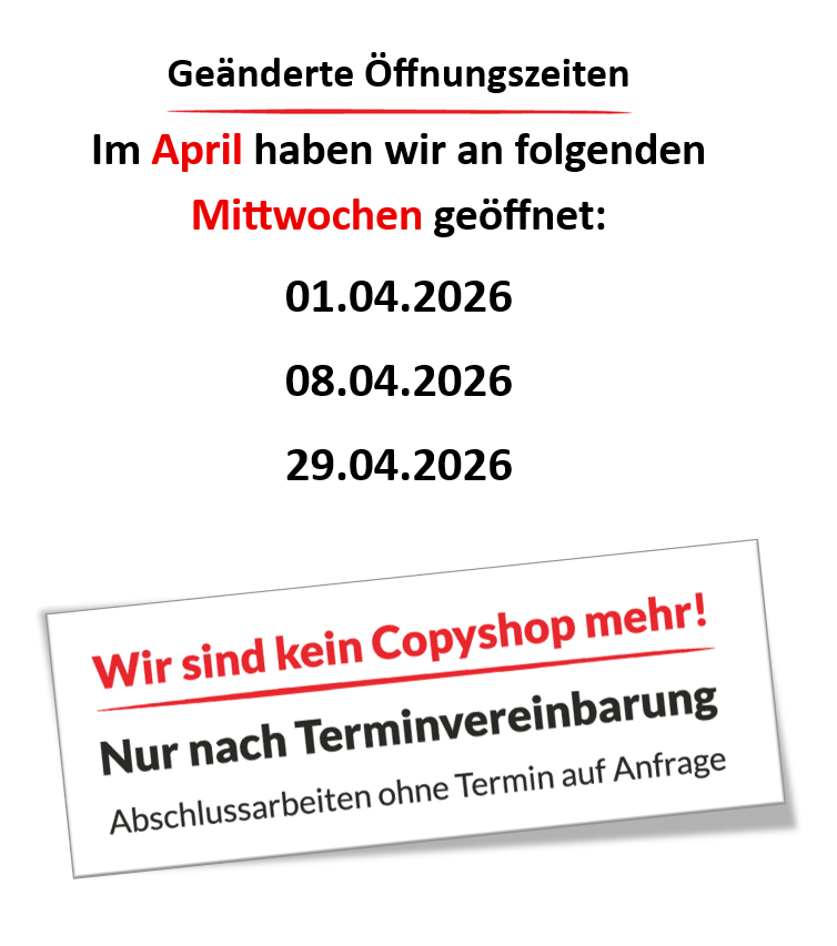 Dissertationen, Flyer etc. ab sofort ganz einfach telefonisch per Mail oder über unsere
